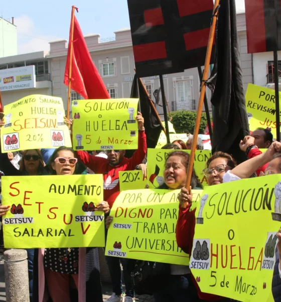 Integrantes del Sindicato Estatal de Trabajadores al Servicio de la Universidad Veracruzana (SETSUV) marcharon por las principales calles del centro...