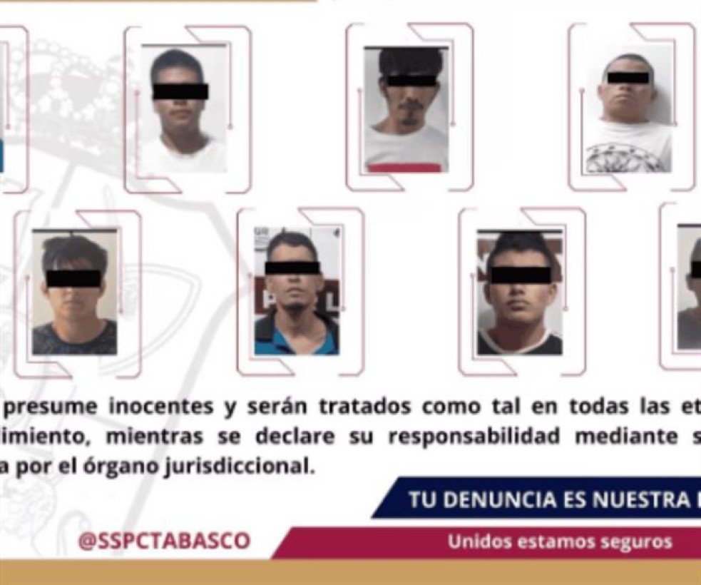 Las autoridades de Tabasco anunciaron la detención de ocho hombres, señalados por delitos contra la salud y por portar armamento exclusivo del ejército. El operativo fue realizado por el Grupo Especial Tabscoob junto a la FIRT Olmeca.