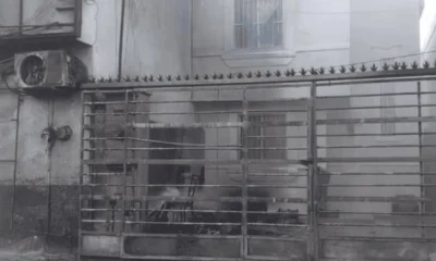 Un incendio afectó una puerta de madera del histórico templo poblano durante la madrugada. Las causas se investigan.