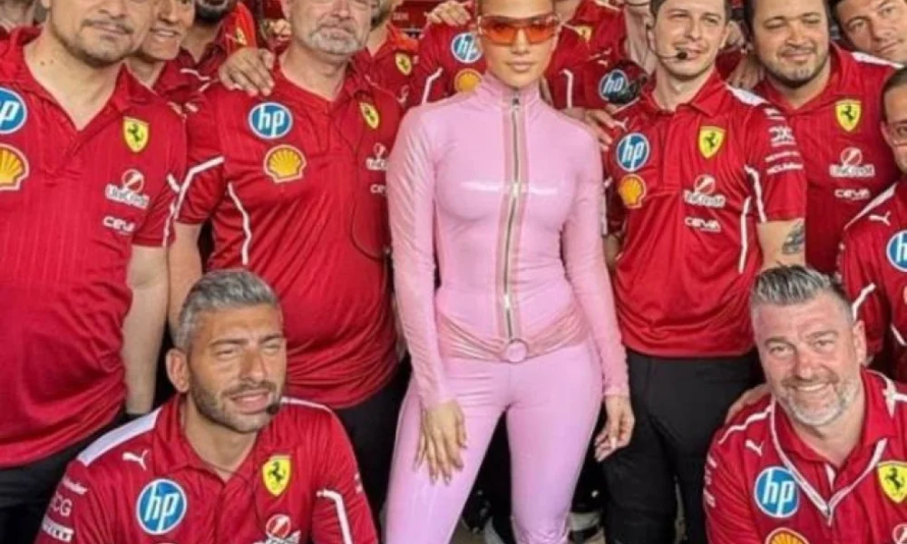 La estrella internacional brilla con un look inesperado en el circuito de la F1.