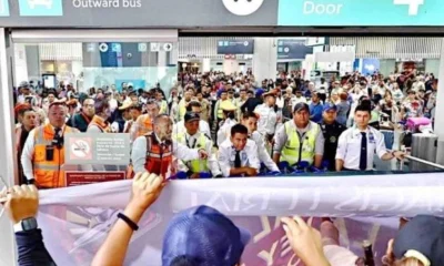El caos se apoderó del aeropuerto mientras pasajeros y maestros libraban una batalla campal entre gritos y emparedados de protesta.