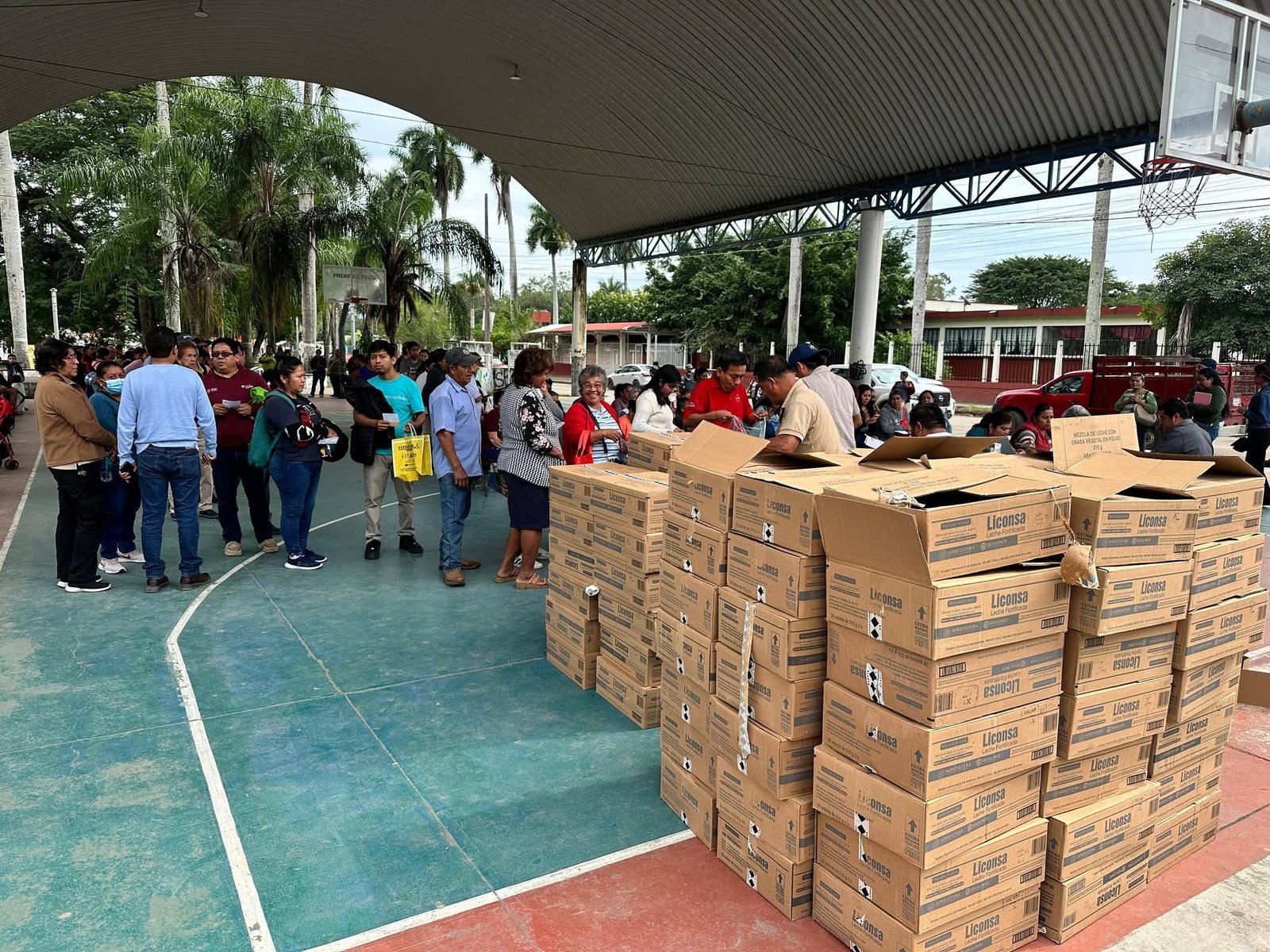 Durante la jornada, familias beneficiarias acudieron al punto de entrega para recibir este apoyo alimentario, el cual forma parte de las estrategias gubernamentales orientadas a mejorar la nutrición y contribuir a la economía de los hogares.