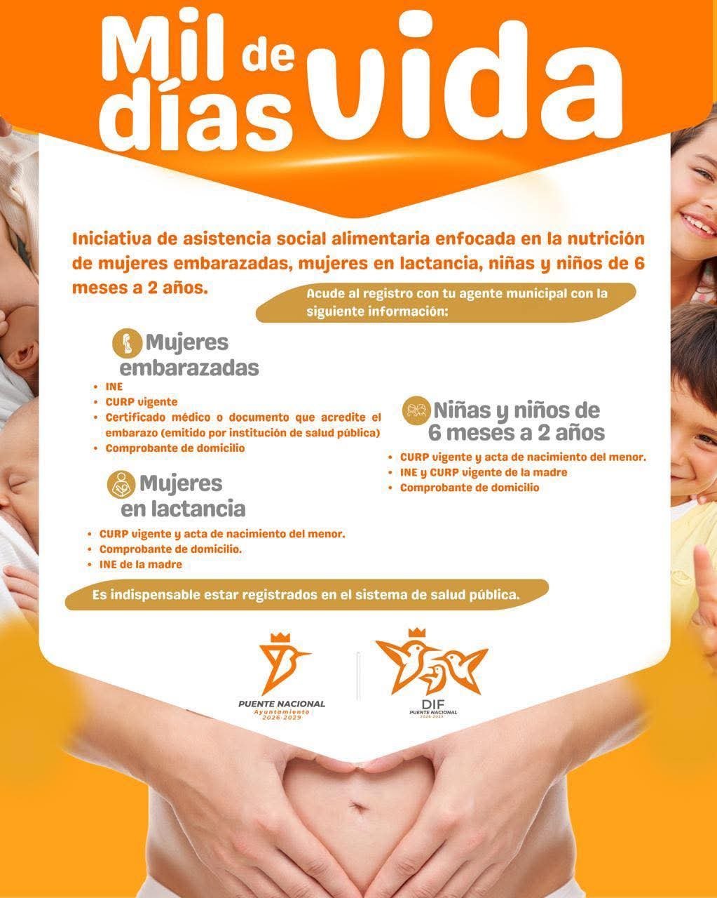 Con el objetivo de mejorar la salud y el desarrollo de la población desde sus primeras etapas, el municipio de Puente Nacional puso en marcha el programa “Mil Días de Vida”, una iniciativa de asistencia alimentaria dirigida a mujeres embarazadas, mujeres en periodo de lactancia, así como a niñas y niños de entre 6 meses y 2 años de edad.